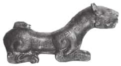 战国韩将庶虎节青铜,伏虎形,存半符,符身阴刻铭文“韩将庶信节”等十字。