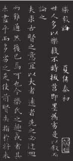 《乐毅论》拓本(局部)东晋王羲之书。《乐毅论》是三国时期魏夏侯玄撰写的一篇文章,论述了战国时期燕国名将乐毅及其征讨各国之事。