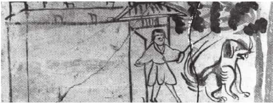 魏晋南北朝时期守卫图画像砖坞门前站立一个手持木棍的男子,右边树下蹲着一只狗,正在为主人看守庄园。看守庄园男子的身份可能就是衣食客。衣食客的身份地位历史记载不明确,往往和佃客、典计等相提并论,说明他们既不同于从事耕作的佃客,也不同于管理家务的典计,可能是一种由主人供给衣食、办理杂务的随从。他们不得独立为户,只能注籍于主人的户籍上,因而对主人有依附关系。