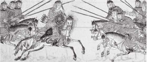 13世纪泥金写本:敌对的两个蒙古部落在战斗