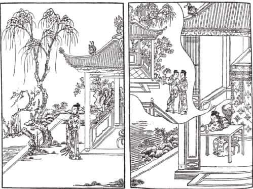 《牡丹亭》插图《寻梦,惊梦》杜丽娘游园伤春,梦书生折柳伤情,竟至一病不起,死后魂魄不散,寻觅梦中情郎不止。三年后,真等到书生柳梦梅来掘棺复生,共结情缘。