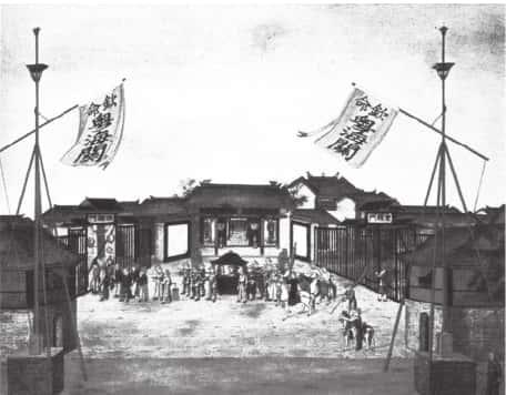 19世纪初广州粤海关外貌清乾隆二十二年(1757),清政府宣布关闭闽、浙、江三海关,仅保留粤海关对外通商,监管中国的进出口商品交易。