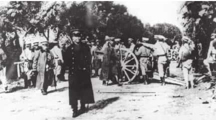 1911年武昌起义时,武昌城外革命军炮队隔江攻击敌军。